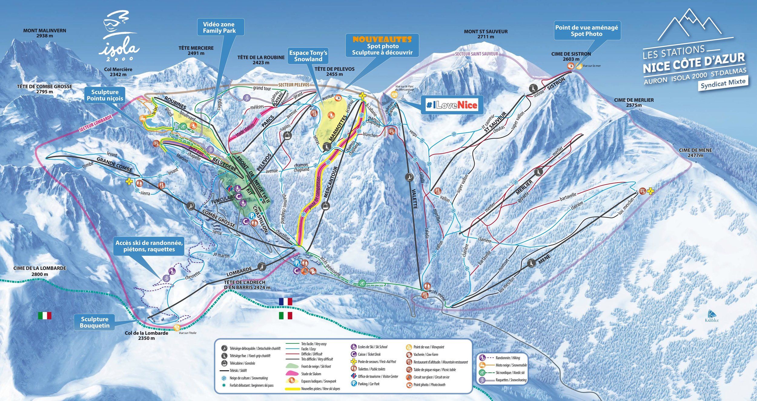 Auch Tiefschnee-Fans finden geeignete Reviere, zum Beispiel beim Col de Mercière, am Cime de Méné oder am Mont St. Sauveur. Freestyler hingegen fühlen sich im Snowpark von Isola 2000 wohl, in Tony's Snowland.
