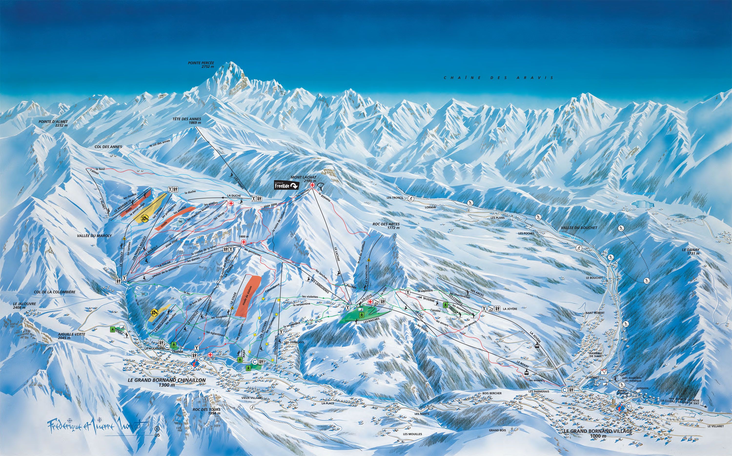 Die kleine Gemeinde Le Grand Bornand liegt auf einer Höhe von 1.000 m in der Region La Clusaz am Fuße des Aravis Massivs. Der gemütliche Ort wurde in den letzten Jahren ständig weiter geplant und hat sich trotzdem seinen ursprünglichen Charme bewahrt. Das ehemalige Bauerndorf bezaubert noch heute durch seine liebevolle Architektur. Die modernen Gebäude sind durch die Bauweisen der Vergangenheit maßgeblich beeinflusst worden, sodass eine einzigartige Harmonie aus Vergangenheit und Moderne entstanden ist. Diese Atmosphäre wurde auch auf die netten Restaurants und Bars übertragen, die den Ort komplettieren. Zudem beeindruckt die traumhafte Berglandschaft welche den kleinen Ort umgibt. Die Gipfel von Col des Annes, Pic du Jallouvre, Pointe Blanche und dem Col de la Colombière sind wirklich atemberaubend.Massif des Aravis
