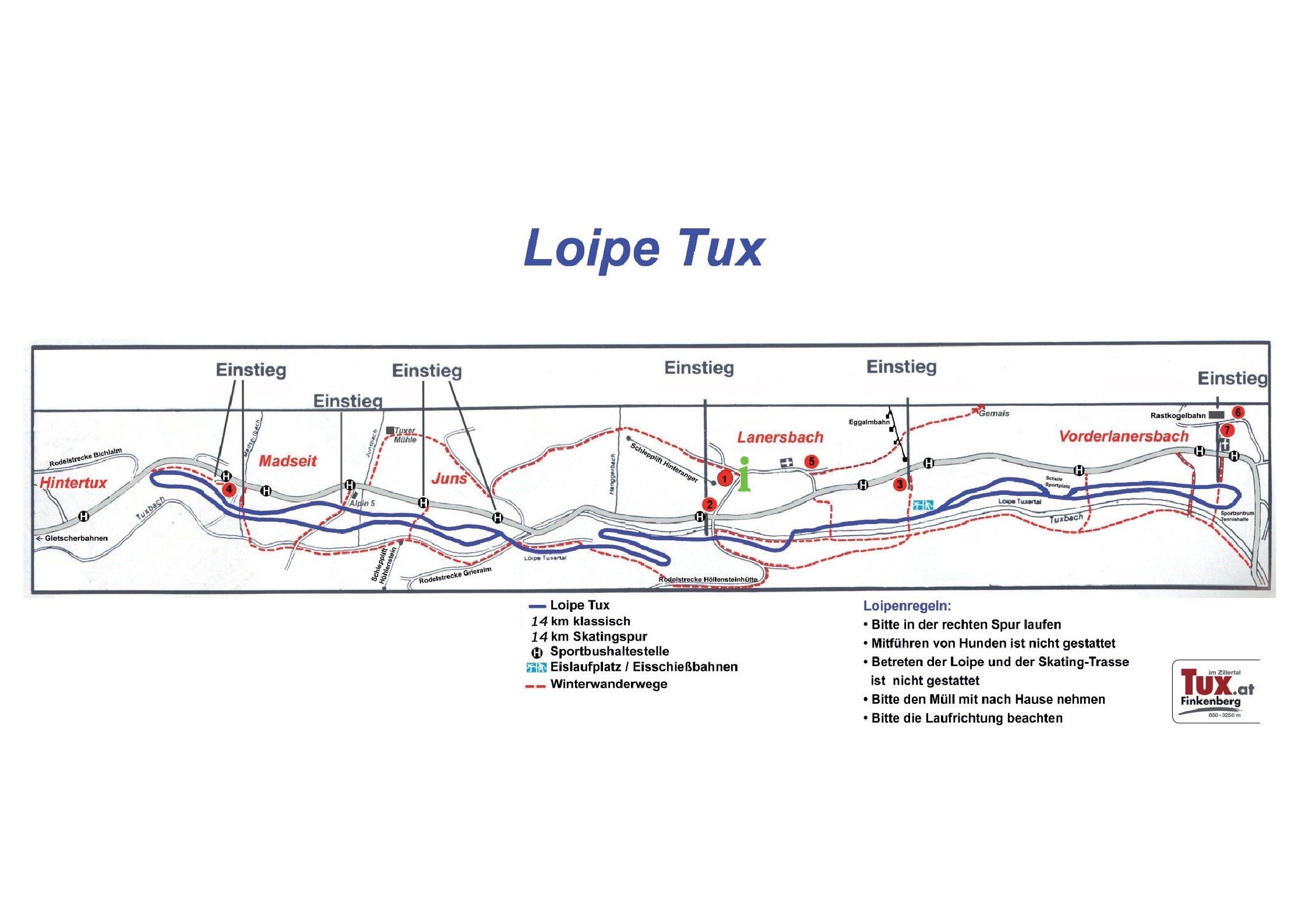 Jeder Ort im Zillertal verfügt über eigene Loipen. Insgesamt ergibt sich dadurch ein Netz von ca. 125 km Länge. Rund um Mayrhofen und Hippach gibt es etwa 30 km gut gespurte Loipen, darunter einige für den Skatingstil. Der Schwierigkeitsgrad der Loipen in dieser Region liegt eher im leichten Bereich und bietet somit perfekte Voraussetzungen für die ersten Versuche auf Langlaufskiern. Beispielsweise können Sie auf der drei Kilometer langen Hollenzenloipe oder der 0,8 Kilometer langen Strasser-Loipe die verträumte Winterlandschaft genießen.