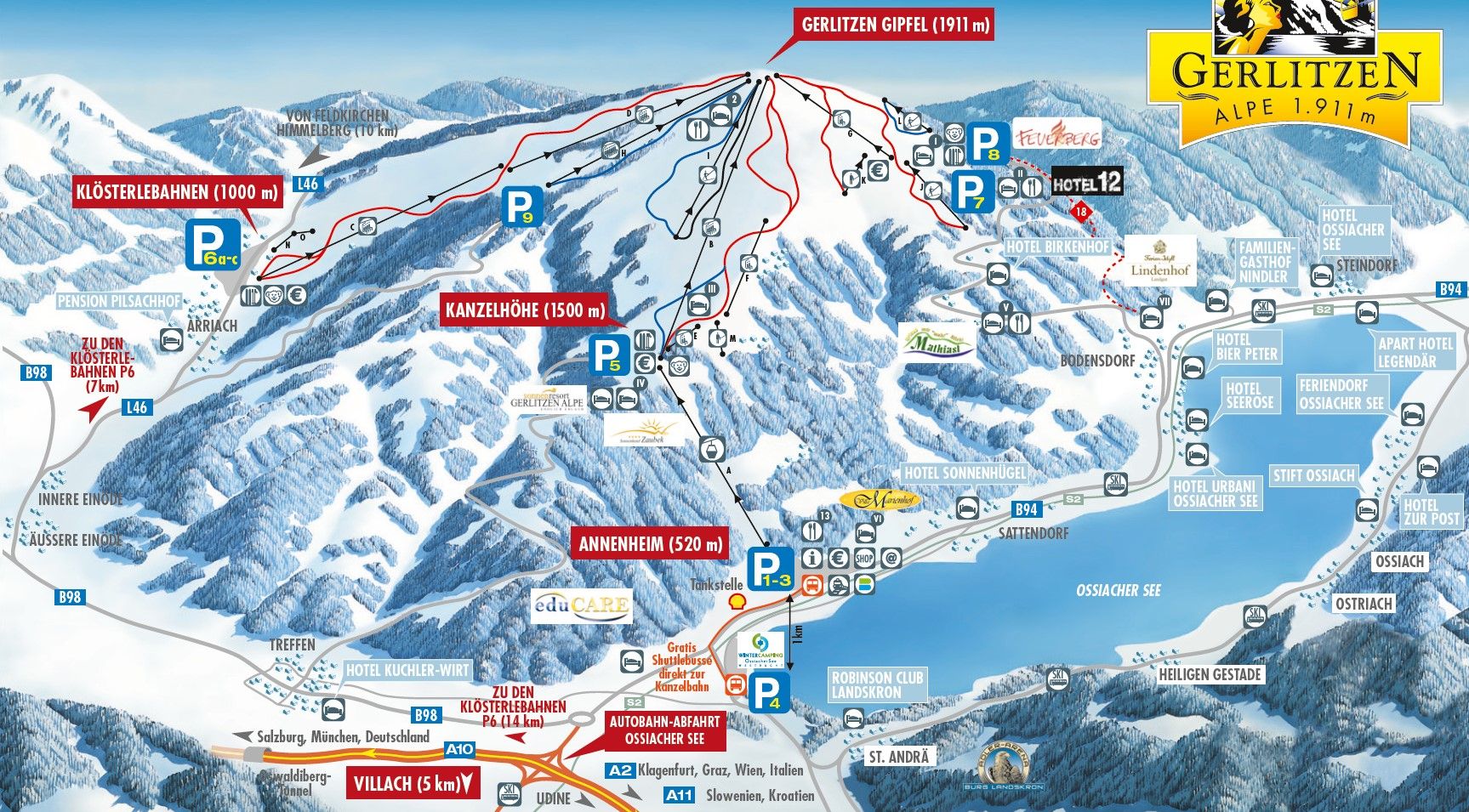 Der Ossiacher See ist eine der beliebtesten Ferienregionen in Kärnten. Er liegt auf einer Höhe von etwa 500 m zwischen dem Hausberg Gerlitzen sowie den Ossiacher Tauern. Auch Familien werden sich am Ossiacher See absolut wohl fühlen. Um den See führt ein ca. 25 km langer, familienfreundlicher Weg, der herrliche Ausblicke ermöglicht. Verschiedene Langlaufloipen auf der Gerlitzen bieten sich für schöne Aktivtouren an und runden das tolle Angebot rund um den See ab.Anreise Villach